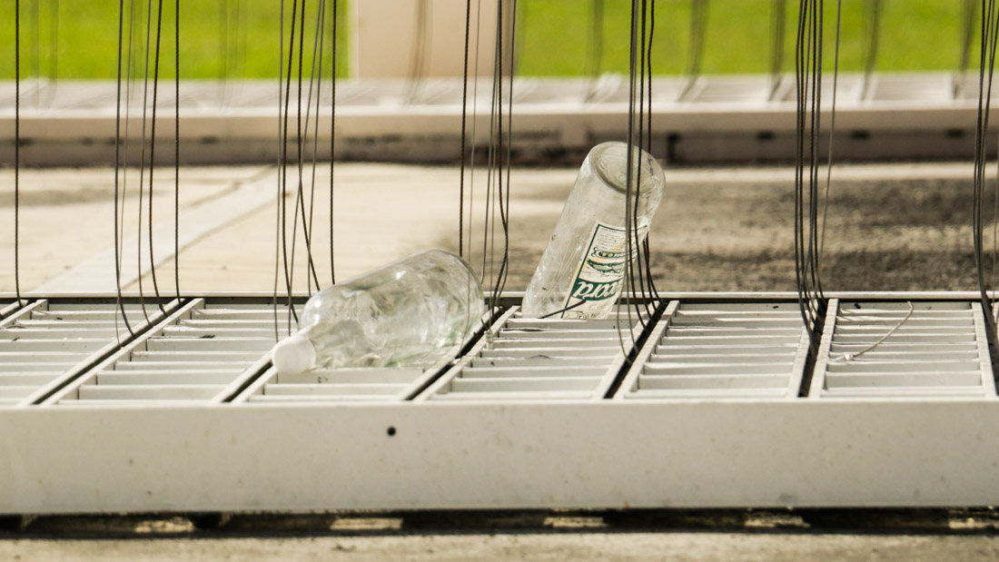 La estructura se encuentra en buenas condiciones, a pesar de que en varias ocasiones se han robado parte de su alumbrado. Entre las varillas hay un par de botellas, escondidas, a pesar del profundo foso que aísla la escultura. Son la única mancha negra. Eso y una bolsa de basura frente al monolito de piedra que señala su reinauguración en 2013.