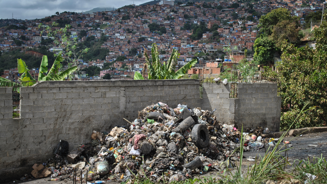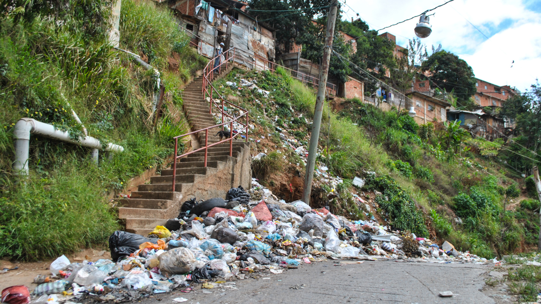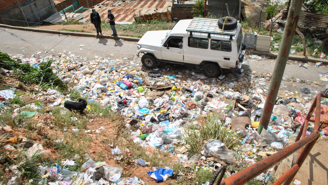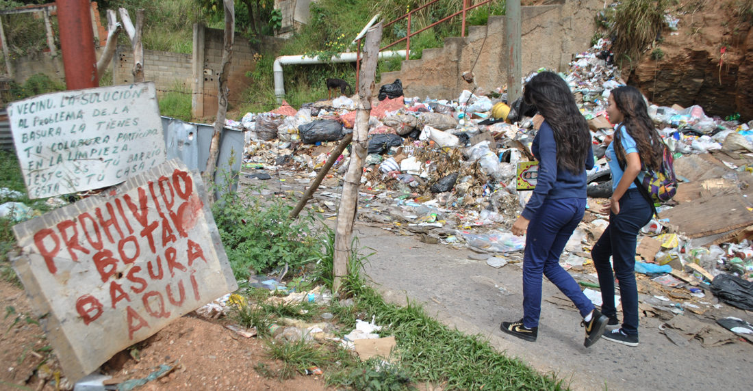 El problema inició en noviembre de 2017, informó Maritza Ruíz, habitante de la zona. Vive a unas 10 casas del vertedero improvisado en el sector San Juan, aledaño a donde se divisa la gran pila de desechos. Es una de las que más ha trabajado para la solución de este problema. «Antes de noviembre el Supra (servicio de basura de la Alcaldía Libertador) venía cada tres días, pero ahora ni eso». Ahí llevan exactamente un año sin recoger los desperdicios.