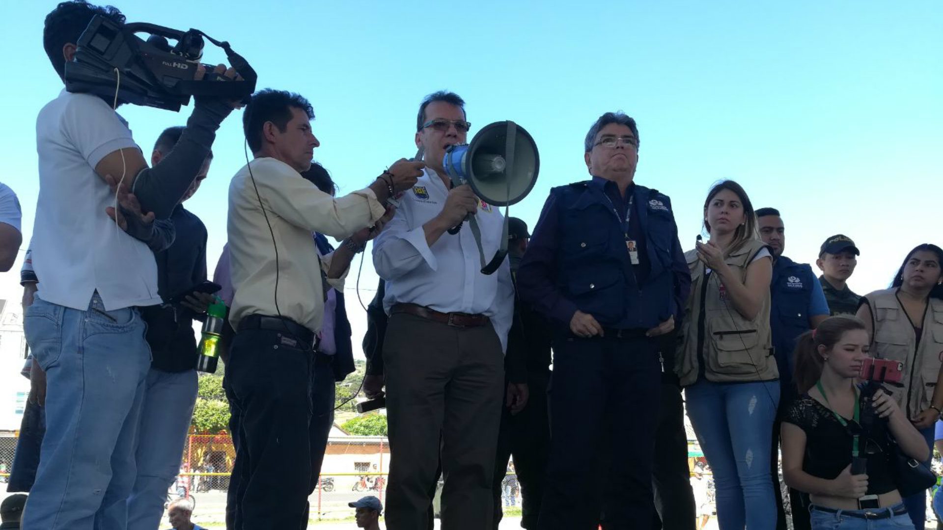 Jorge Villamizar, Defensor del Pueblo del Norte de Santander, llegó hasta el lugar de la protesta y se dirigió al grupo de venezolanos, aclarándoles que su tarea era también defender a los colombianos.
