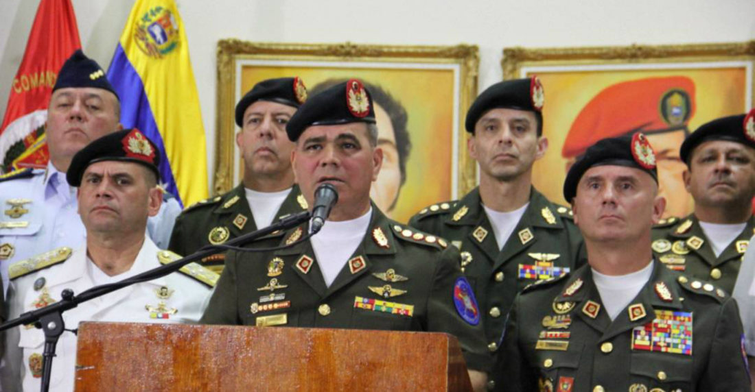 El ministro de la Defensa, Vladimir Padrino López, leyó un comunicado en el que rechaza de manera “radical” las declaraciones del jefe de Departamento de Estado y ratifica su lealtad del sector castrense con el presidente Nicolás Maduro y su apego a la chavista Asamblea Nacional Constituyente.