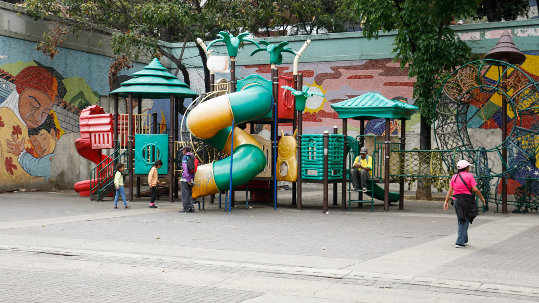 Grama sin podar, hojas secas sin recoger, basura regada y grafitis forman parte de la cotidianidad en los parques infantiles de las comunidades de Caracas. Estas áreas, que fueron creadas para la convivencia, esparcimiento y disfrute de las comunidades, hoy están tristes y abandonados.