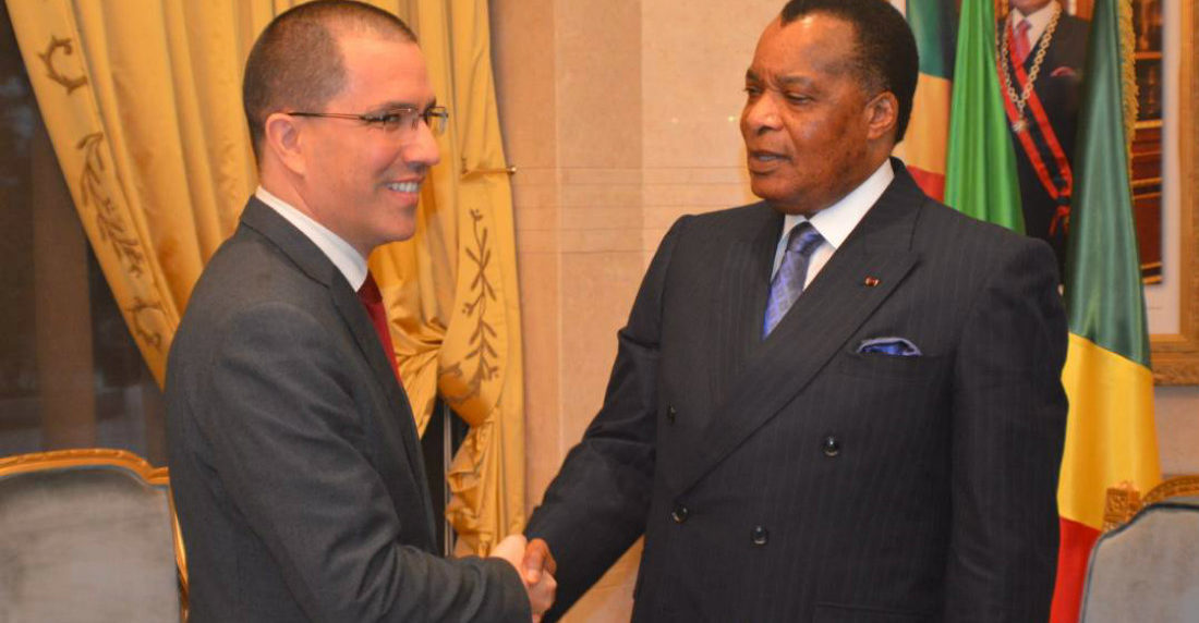 «Esta mañana nos recibió el Presidente de la República del #Congo, Denis Sassou-Nguesso. Analizamos los acontecimientos mundiales, regionales y nacionales. Profundizamos nuestros vínculos de amistad y cooperación entre América Latina y África», escribió Arreaza, en su cuenta oficial en Twitter.