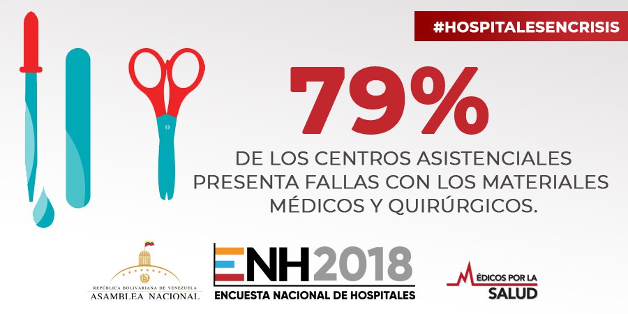 El diputado precisó que el 79% de los centros asistenciales no cuenta con material quirúrgico suficiente, mientras la escasez de medicinas subió diez puntos con respecto a 2017 y 33 puntos más que en 2014, precisó.