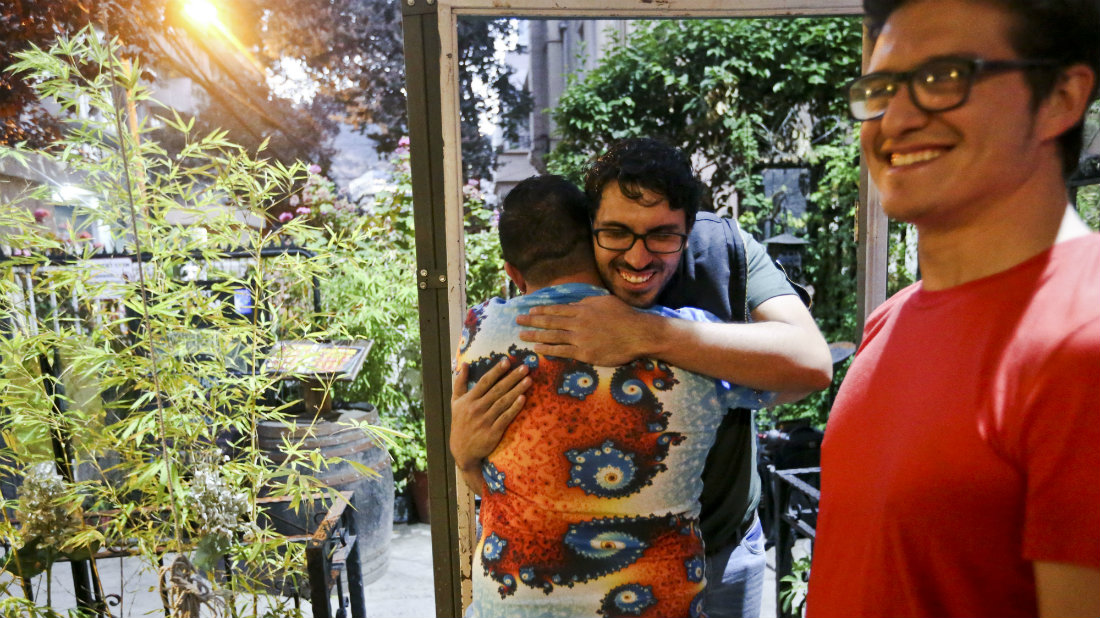 Recientemente, y acompañado de su esposo estadounidense, Núñez Mujica viajó a Santiago para conocer en persona a aquellos a los que ha ayudado a salir de Venezuela. Durante un emotivo encuentro en un bar del centro, el vínculo inmediato con las personas que conocía por primera vez se hizo evidente al saludar a Klies y a otras tres personas con grandes abrazos.