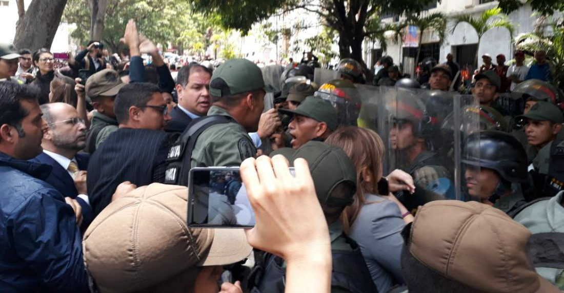 Agentes de la GN «agredieron, retuvieron e impidieron ayer (martes) el acceso al Congreso a varios periodistas y legisladores», entre ellos el camarógrafo de Venevisión José Rivas y los parlamentarios Jony Rahal y Winston Flores, señaló en un comunicado la SIP, con sede en Miami.