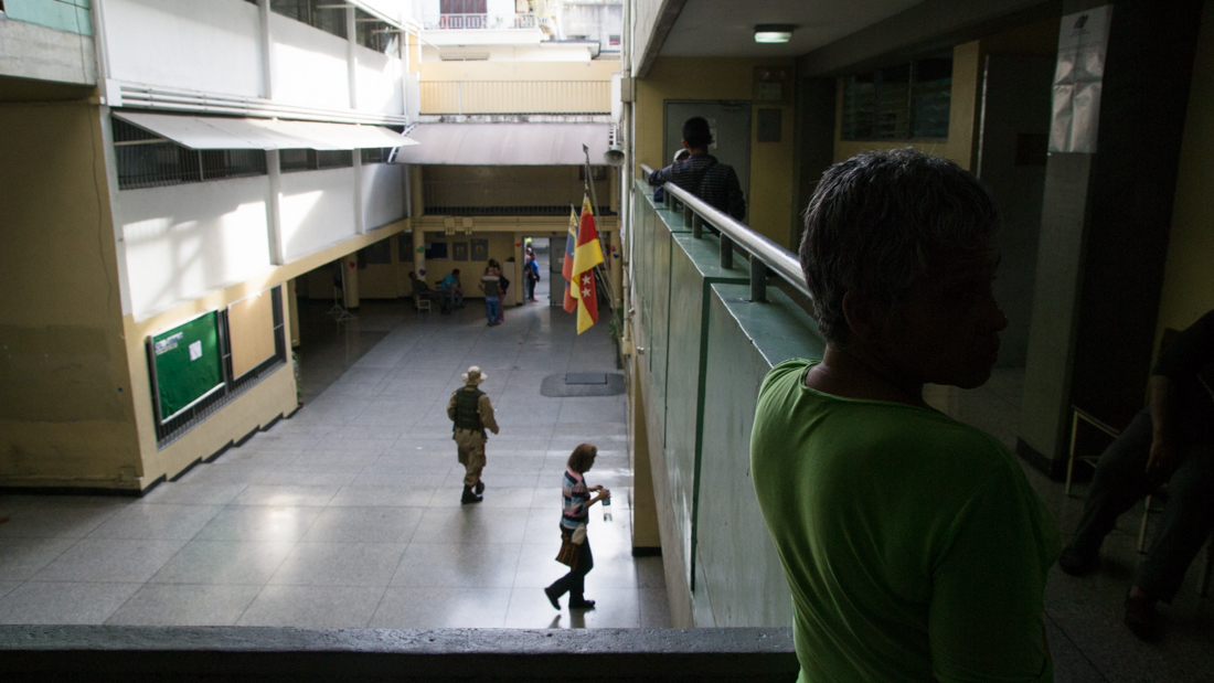Con sillas vacías y corredores aún más desolados, la Escuela Municipal Andrés Bello en Chacao no mostró un escenario diferente del que vivía simultáneamente el municipio Sucre. A las 5 PM, no llegaban a cinco las personas que esperaban votar en las diferentes mesas de votación que sumaban 11 en total.
