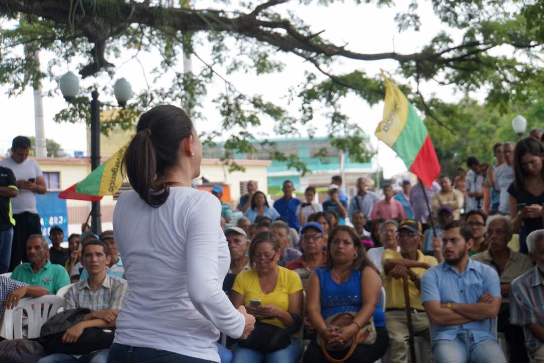 El primer acto al que acudió la exdiputada de la Asamblea Nacional fue durante un encuentro de vecinos que realizó en la plaza La Fuente de un pueblo ubicado en Guama, San Pablo. De acuerdo a las personas que asistieron, el lugar no había tenido la oportunidad de recibir líderes políticos desde la segunda campaña del expresidente Carlos Andrés Pérez.