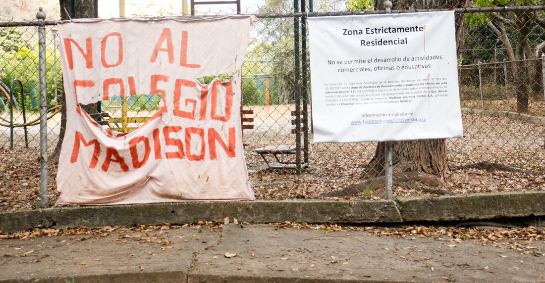 El plan de mudanza de sede del nivel preescolar del Colegio Madison ha levantado molestias y preocupaciones de los vecinos de la zona. María Alejandra Semidey, asesora de la junta explicó que los residentes están a favor de la educación de excelencia, pero exigen que se haga en zonas apropiadas y cumpliendo con las exigencias que la Ley, el municipio y el Ministerio de Educación establecen, lo cual -a su juicio- es incumplido por el preescolar Alimar y por el Colegio Madison. «No se puede dañar a una comunidad, alegando la supuesta lesión del derecho a la educación, pretendiendo hacer ver que los derechos de la comunidad no son importantes», dijo Semidey.
