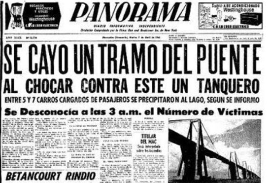 En 1964, dos años después de la inauguración del puente Rafael Urdaneta, en Maracaibo, un buque petrolero impactó la estructura en su tramo inferior, un hecho que acabó con la vida de cinco personas.