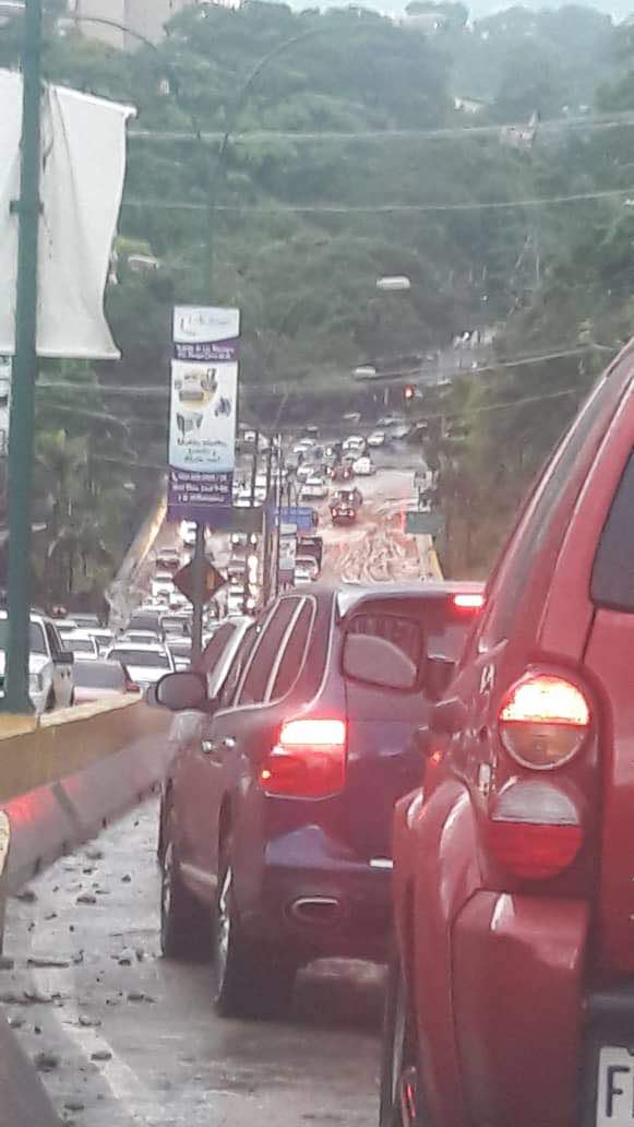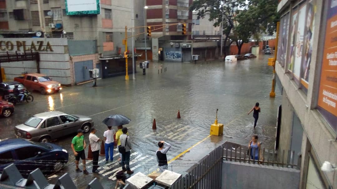 Sabana Grande también evidencia la huella de las lluvias. En la calle aledaña al Centro Comercial El Recreo e puede observar una laguna.