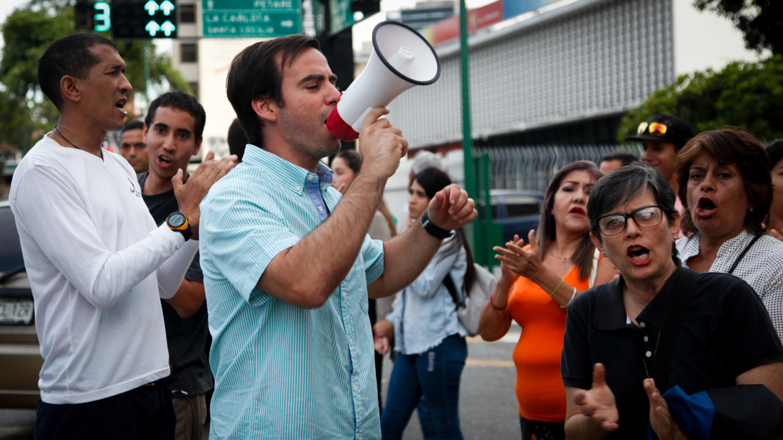 El concejal Manfredo González, quien encabezó la protesta en la avenida Rómulo Gallegos, explicó que la manifestación pacífica se llevó a cabo en ese lugar y no frente a la comuna con el fin de evitar una confrontación.