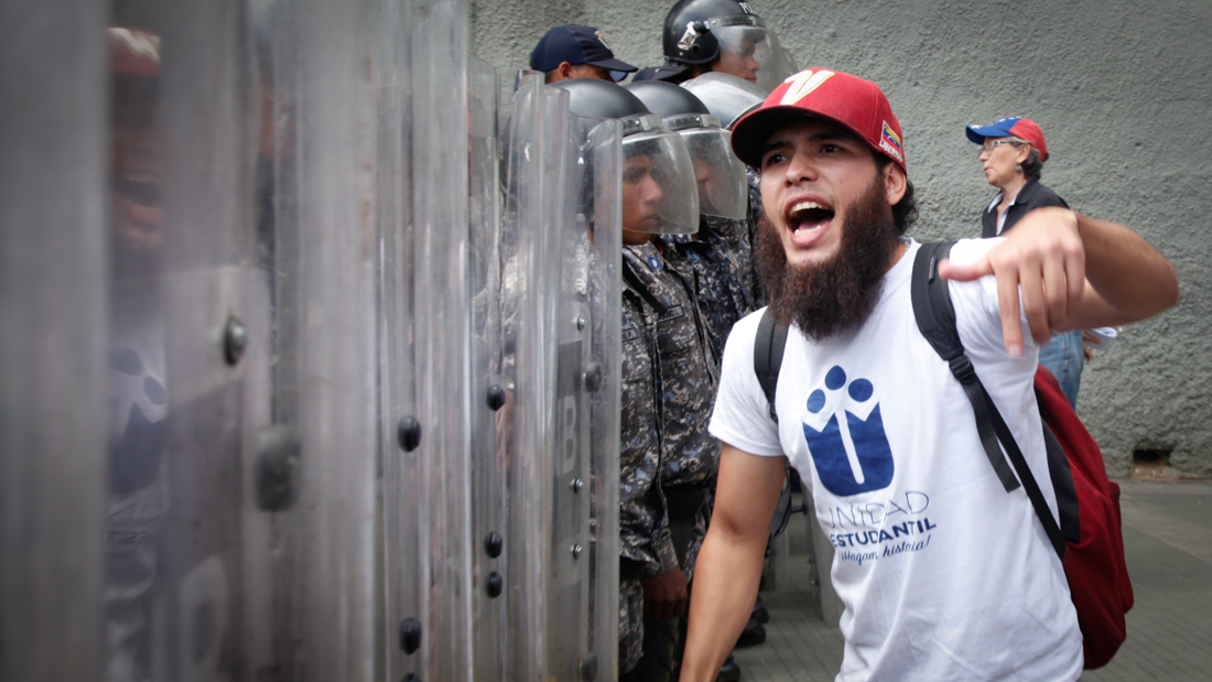 Todos los accesos a la UCV, de hecho, estaban cerrados por efectivos de este cuerpo policial. Aunque estudiantes y uniformados trataron de llegar a un aparente acuerdo, no quedó más que en palabras porque se registró un enfrentamiento entre ambos bandos que duró aproximadamente dos horas, en el que la Guardia Nacional apareció como refuerzo.