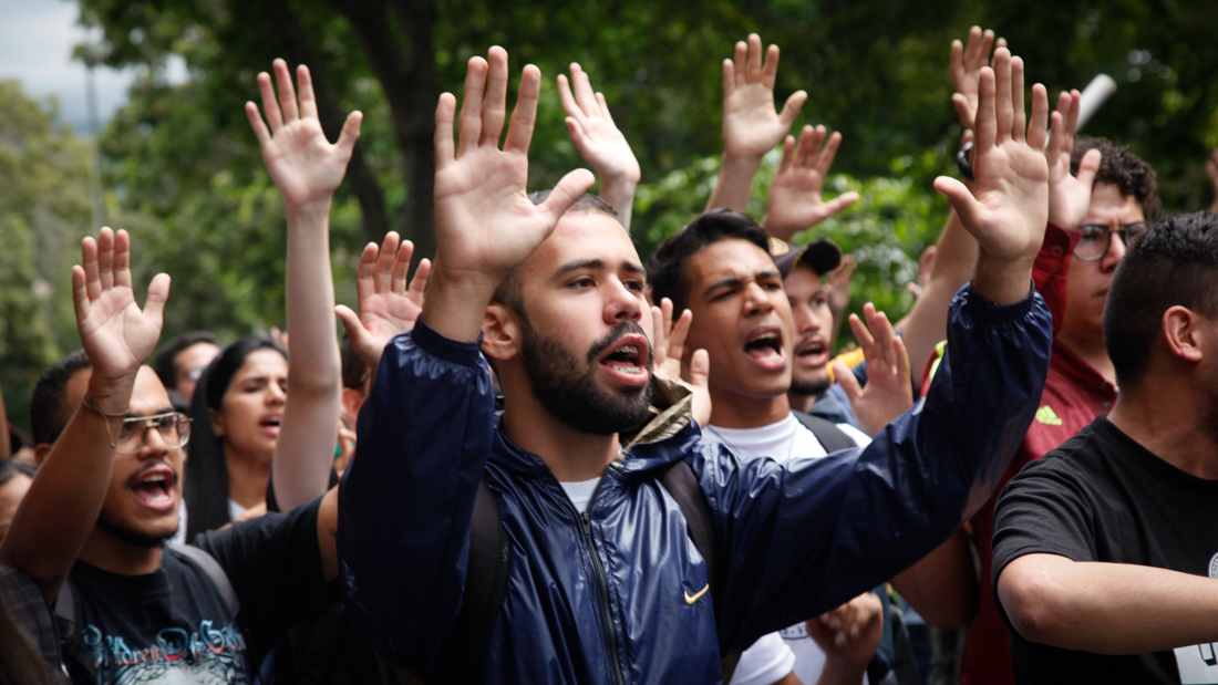 Una vez culminada la asamblea y al grito de “Universidad libre”, emprendieron el camino hacia uno de los accesos de la UCV que da al Hospital Clínico Universitario, por la salida de Los Símbolos. La intención de los estudiantes era salir y hablar con las personas, sin embargo, un piquete de la Policía Nacional Bolivariana (PNB) se los impidió.