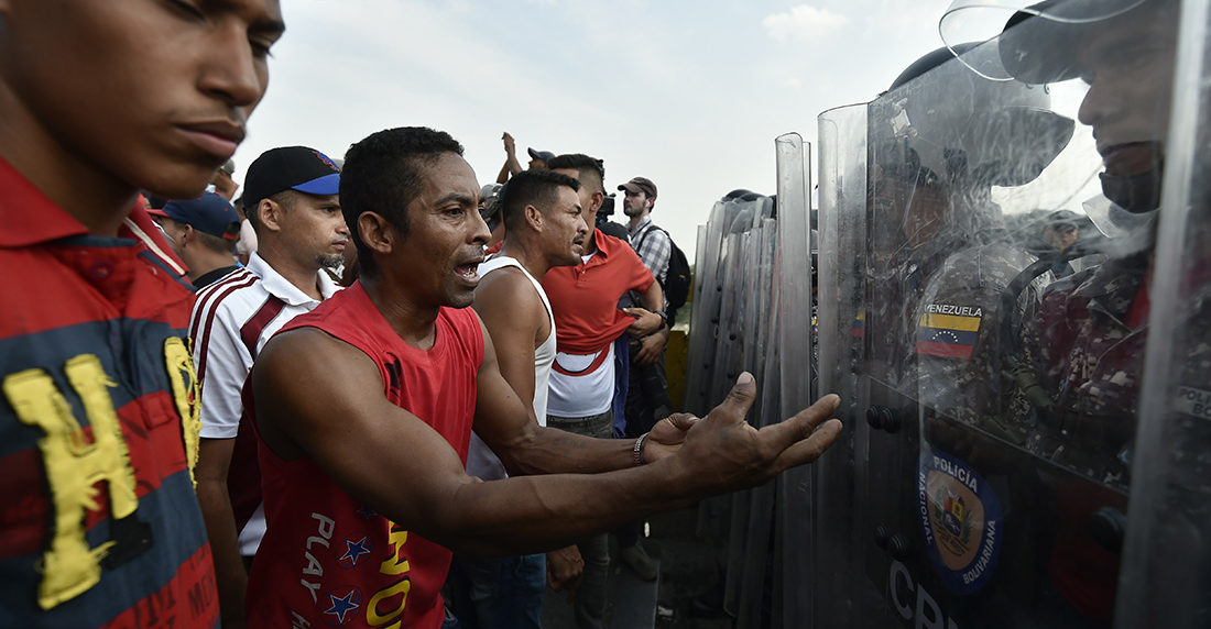 El puente Francisco de Paula Santander fue escenario de violencia el sábado, cuando militares de la Guardia Nacional y policías disolvieron con andanadas de gases lacrimógenos y perdigones de goma una marcha que exigía que la asistencia cruzara la frontera.