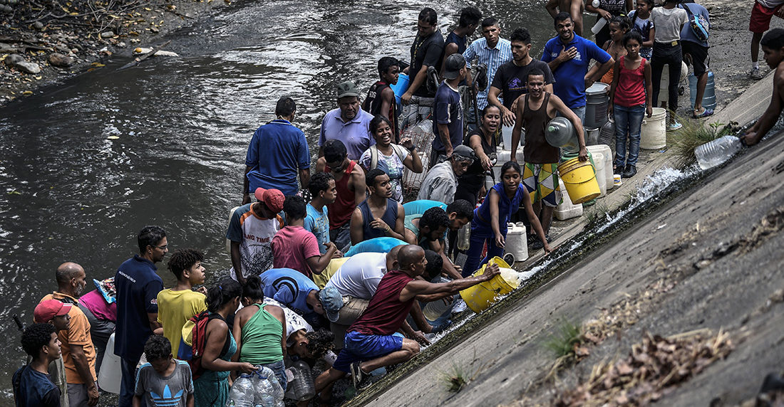 Desesperados por la falta de agua en Caracas como consecuencia de los prolongados apagones que suceden desde el jueves, habitantes del oeste de la ciudad acudieron a las riberas del río Guaire, en la zona de San Agustín, para surtirse de un desagüe que parece salir del edificio de la policía científica, Cicpc, y va a parar al Guaire, la gran cloaca de la capital venezolana. No ha quedado claro de inmediato si se trata de aguas servidas o de una pérdida de aguas blancas