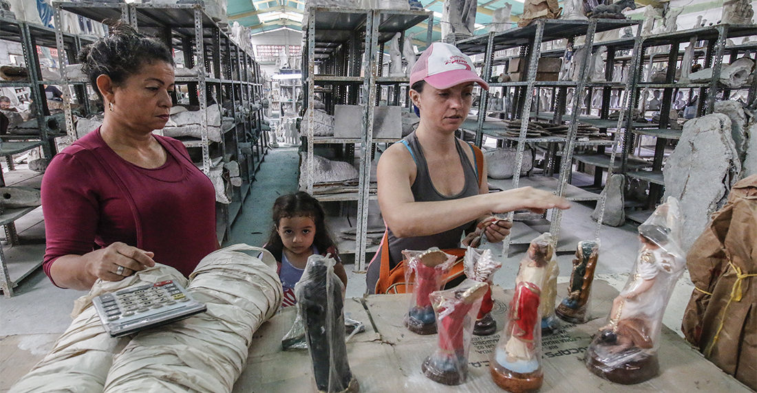 Pero la buenaventura de estos días de Viviana dista del panorama que reportan desde la fábrica que la abastece, un bodegón en San Antonio cuyas estanterías están colmadas de esculturas a medio hacer o esperando a ser comercializadas.