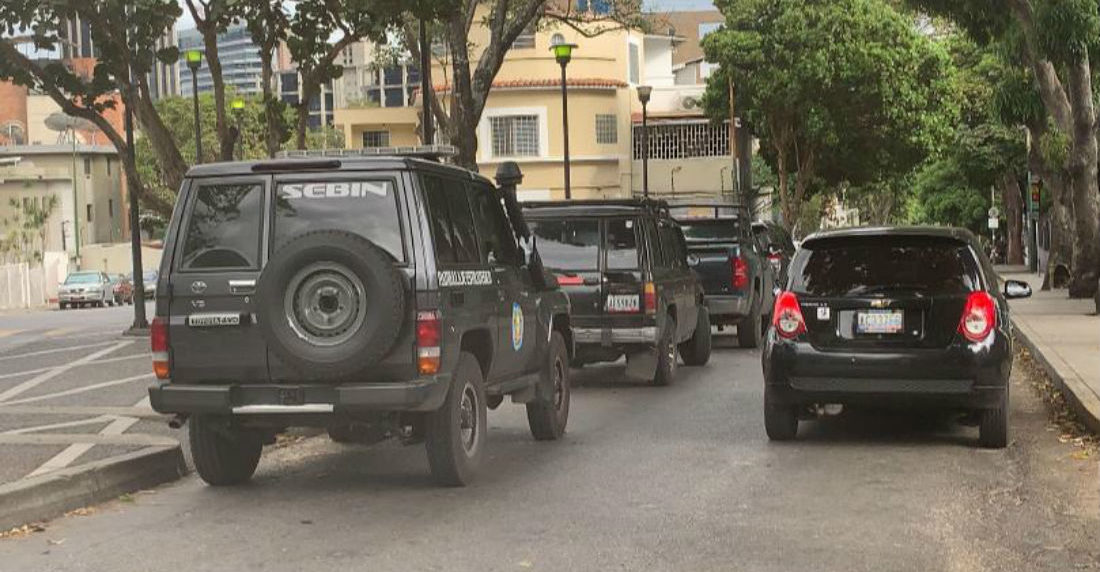 A través de un video difundido por las redes sociales, se pudo constatar la presencia de efectivos de las Fuerzas de Acciones Especiales (FAES) encapuchados y con armas largas en los alrededores del Consulado español en Caracas. El Estímulo confirmó la presencia de funcionarios del Servicio de Inteligencia (Sebin) en la Embajada de España.