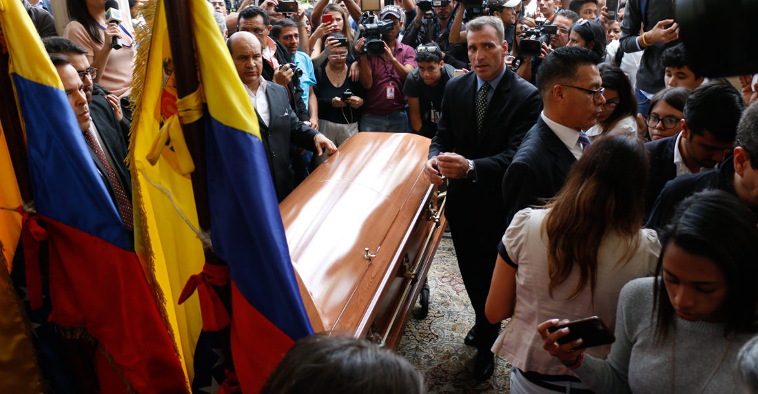 El régimen de Maduro afirma que el dirigente opositor se lanzó desde una ventana en un pasillo del piso 10 del edificio del Sebin, en Caracas, tras pedir permiso para ir al baño, el pasado 8 de octubre de 2018.