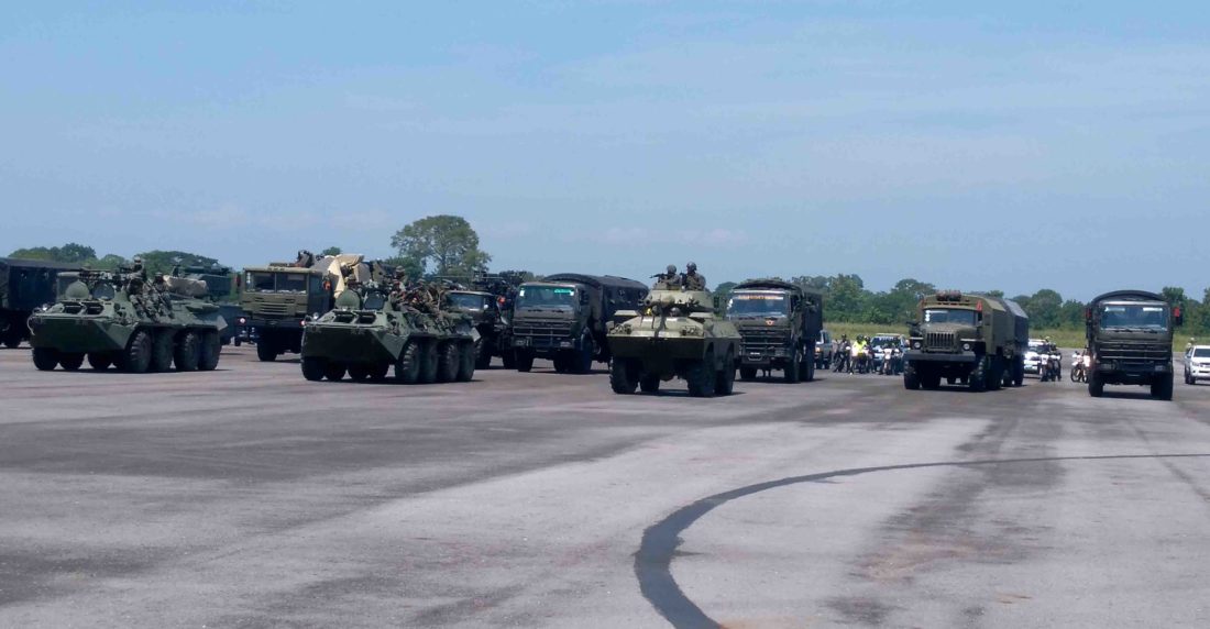 La demostración militar pautada para las 9 de la mañana comenzó cerca del mediodía cuando 50 vehículos, entre convoyes, tanquetas, motos, un avión, un helicóptero y varias patrullas de la PNB que más temprano salieron de San Cristóbal hacia La Fría.