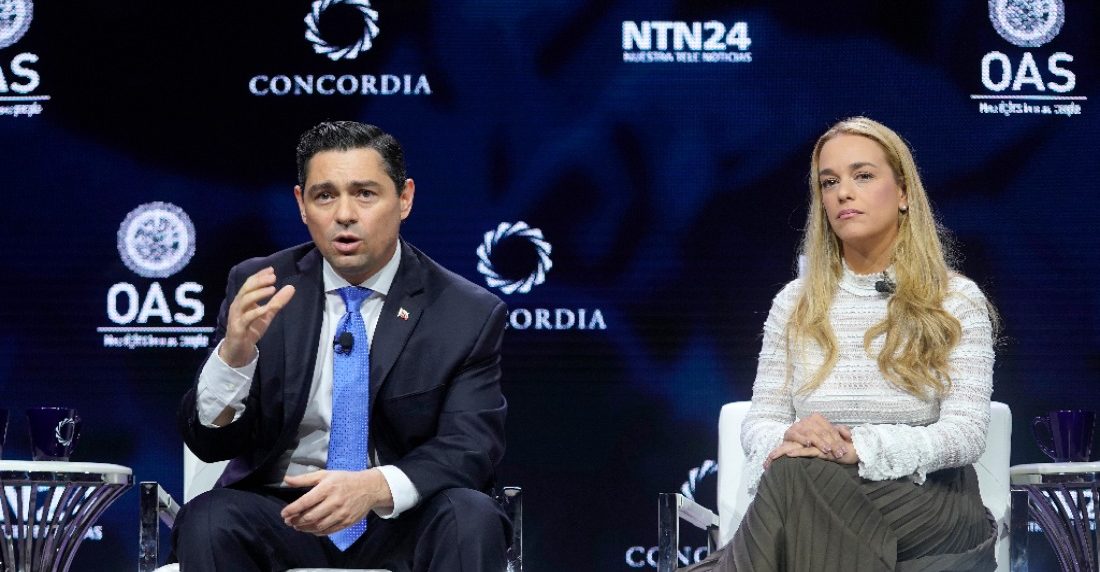El embajador de Guaidó en EEUU, Carlos Vecchio; el coordinador de la Organización de Estados Americanos para la crisis de migrantes y refugiados venezolanos, David Smolansky; y la activista Lilian Tintori participaron esta mañana en el foro Concordia en una sesión sobre la situación de su país.