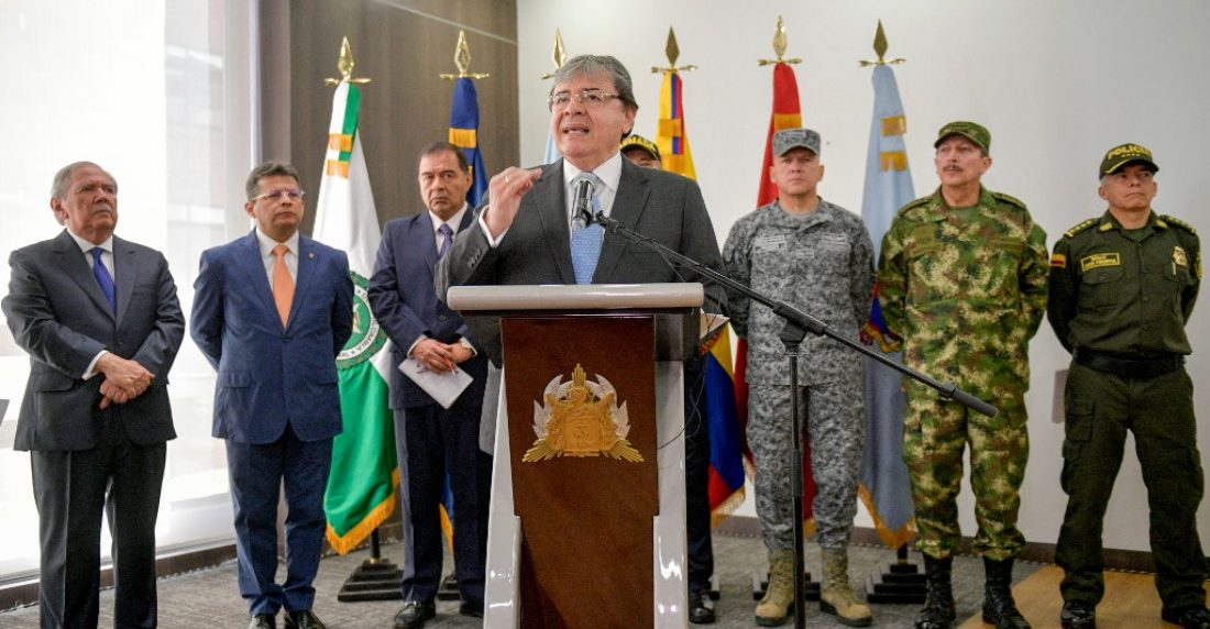El ministro y el canciller Carlos Holmes Trujillo, así como el fiscal general, Fabio Espitia, y la cúpula militar y policial, dieron una rueda de prensa en la que quisieron restar importancia al uso de fotografías no autorizadas y que no fueron tomadas en Venezuela como supuestas pruebas del apoyo del régimen chavista al ELN.