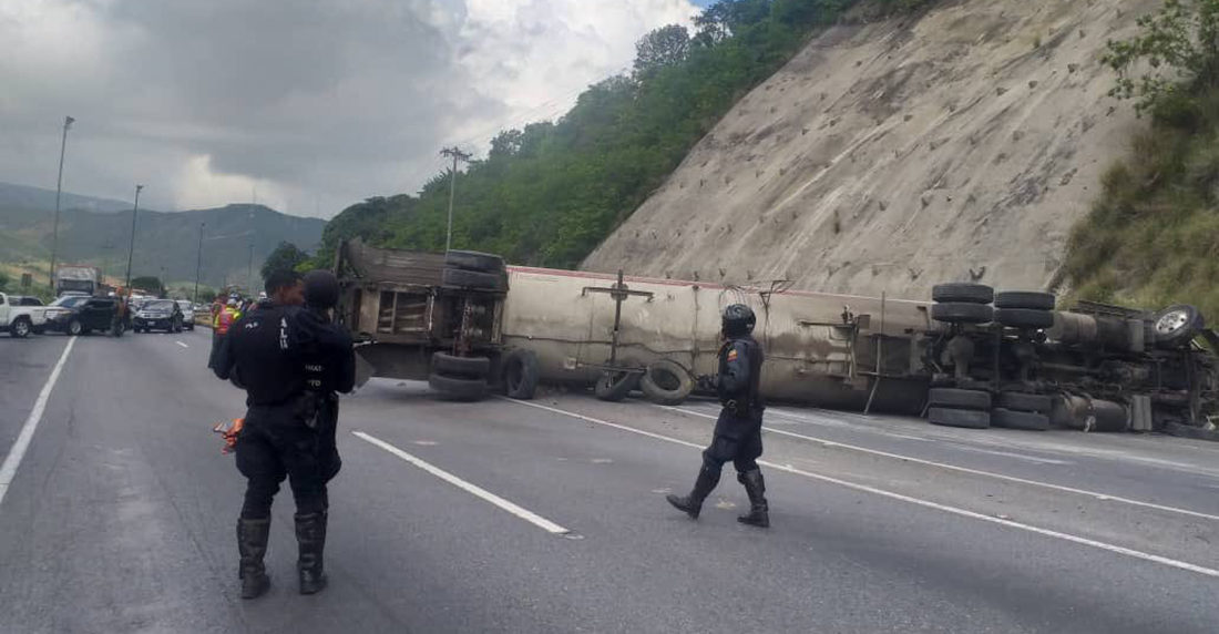 Una gandola de Pdvsa Gas se volteó en la autopista Caracas- La Guaira la tarde de este 6 de octubre y ha mantenido el tránsito detenido en ambos sentidos por al menos dos horas.