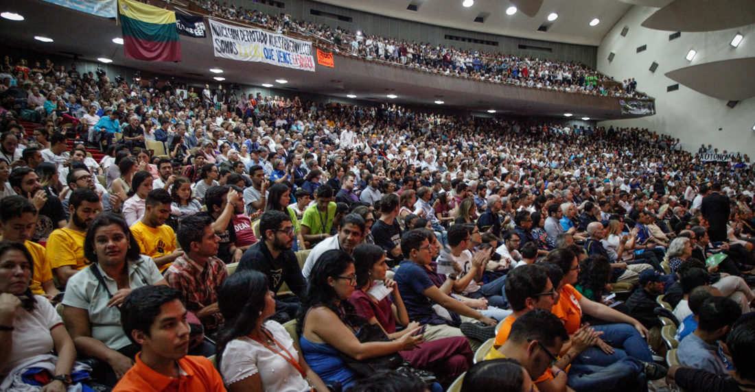 La Asociación Venezolana de Rectores Universitarios (AVERU) realizó este lunes un evento en el aula magna de la Universidad Central de Venezuela (UCV) en favor de la autonomía universitaria. En la iniciativa participaron profesores, egresados, empleados y representantes de la sociedad civil.