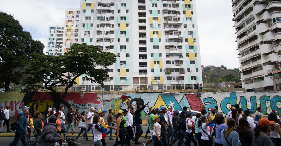 “Hoy tenemos Patria, que nadie se equivoque”, dice un enorme mural que da la bienvenida a los visitantes en la calle La Libertad, El Observatorio, en la populosa parroquia 23 de Enero de Caracas. En esta división municipal viven unas 270.000 personas, abigarradas en grandes edificios y barriadas en colinas, con intrincadas calles y escalinatas.