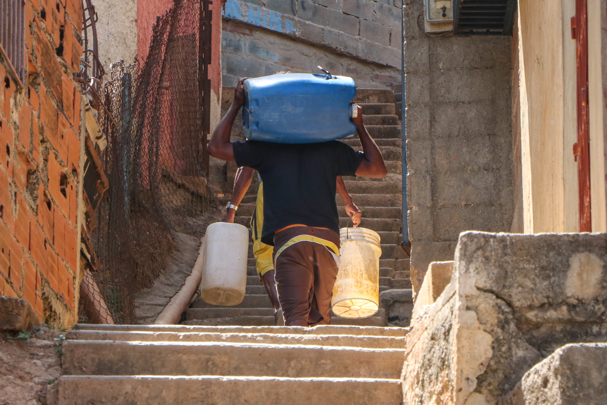 Le gritan a Julián que no derrame el agua al subir las escaleras. Son 230 escalones desde la calle hasta su casa en la parte alta de la cuesta. Julián conoce el número exacto porque las sube y las baja a diario, debido a la necesidad de tener agua en casa para cocinar, lavar la ropa y usar lo demás para el baño. Por esas mismas escaleras suben y bajan ancianas, con igual propósito.