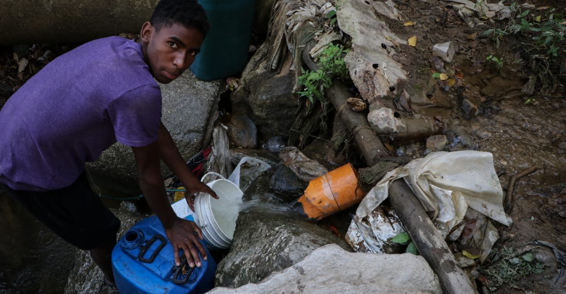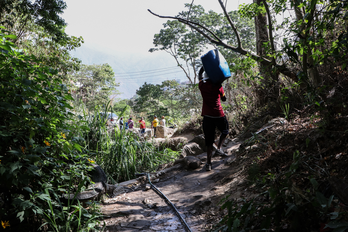 Pedro Sojo, quien maneja un camión cisterna, dice que carga el agua en un surtidor al pie de El Ávila. Pero él y otros camioneros deben ordenarse por largas horas en las inmediaciones del surtidor para poder recogerla y vendérsela luego a la comunidad.