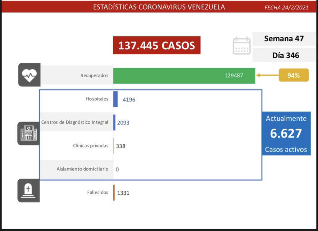 «Distrito Capital es la entidad donde este miércoles se registra la mayor cifra de casos comunitarios (167), con contagios activos en 20 parroquias; seguido por los estados: Miranda (88), Mérida (51) y Zulia (38)», escribió Rodríguez este 24 de febrero.