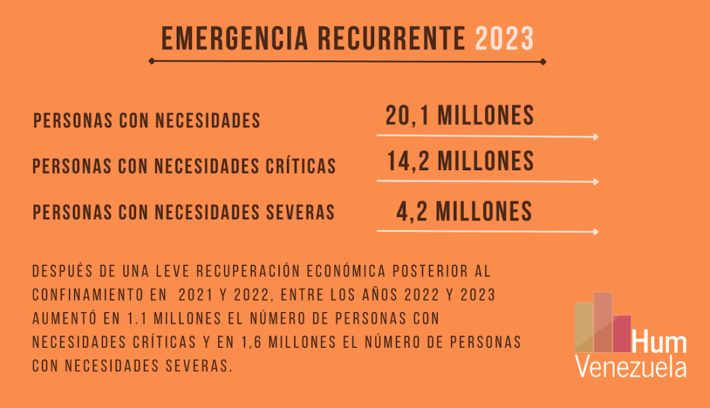 «Después de los alivios ocurridos entre los años 2021 y 2022, al levantarse las medidas de confinamiento y haberse observado una leve recuperación económica, entre los años 2022 y 2023 el agravamiento de las privaciones ocasionó niveles de mayor necesidad, aumentando en 1.1 millones el número de personas con necesidades críticas y, en 1,6 millones, el número de personas con necesidades severas», explica el informe.