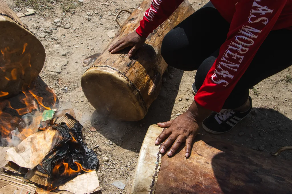 No solo tenían que gestionar su duelo familiar y el personal, sino que entraron en una etapa más: hablar con el Estado para evaluar lo que pasaría. Si recibirían una vivienda o algún tipo de ayuda para retomar sus vidas. Se enfocaron mucho en eso hasta que llegó una idea: empezar a reunirse para tocar tambor.
