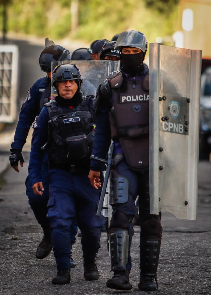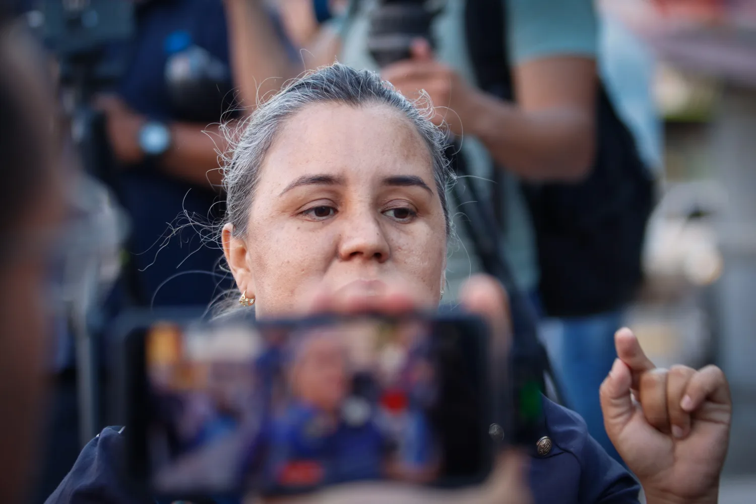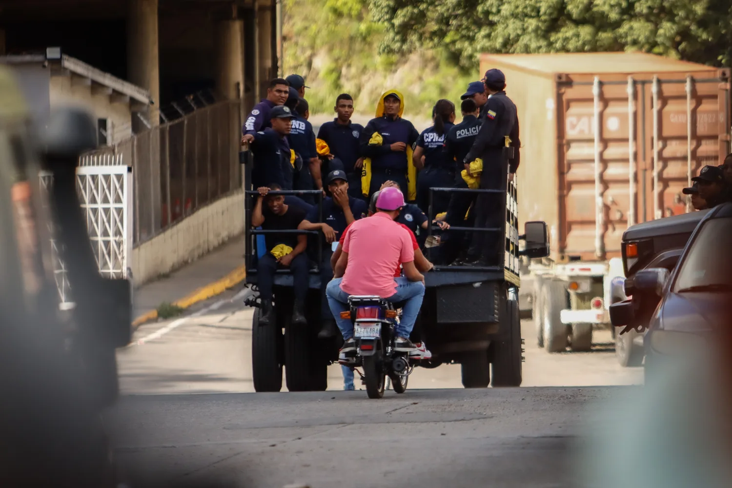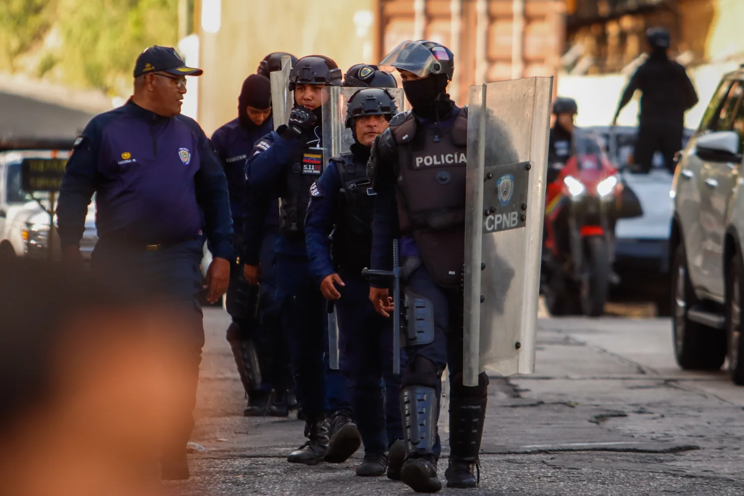 Antes de que más de 30 periodistas desbordaran la acera, unos pocos familiares y defensores de derechos humanos estaban a una cuadra más cercana de El Helicoide. La PNB decidió replegarlos, llevarlos lo más lejos posible de la vista del centro de reclusión. No estaban gritando. Solo hablando mientras las horas se acumulaban.