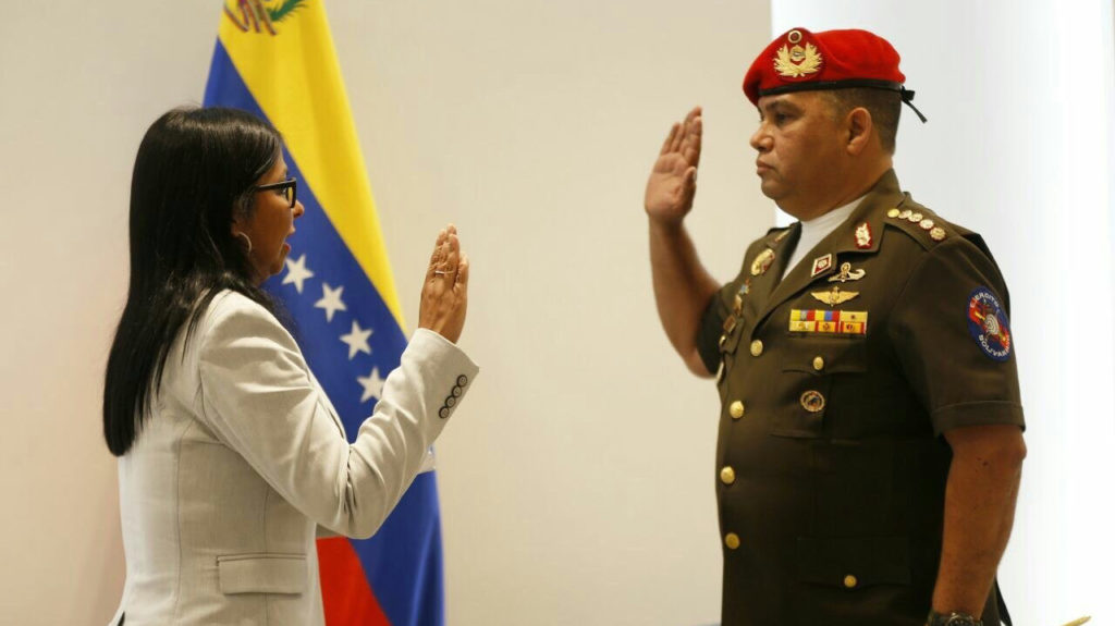 Fotografía cedida por la vicepresidencia de Venezuela en 2019, donde se observa al general Gustavo González López, juramentado en su nuevo cargo de «Consejero de Seguridad e Inteligencia de la Presidencia de la República»