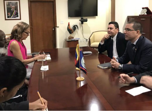El canciller de la República, Jorge Arreaza, sostuvo este domingo una reunión con el ministro de Relaciones Exteriores de Belice, Wilfred Elrington, para profundizar las relaciones bilaterales.