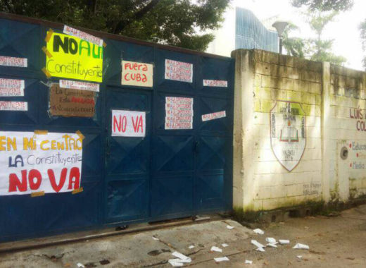 Estudiantes, sociedad civil y representantes de partidos políticos en el estado Carabobo acudieron a diversos centros electorales en Valencia este lunes para colocar pancartas en rechazo a la convocatoria a la Asamblea Nacional Constituyente, tal como estaba pautado por la Mesa de la Unidad Democrática en todo el país.